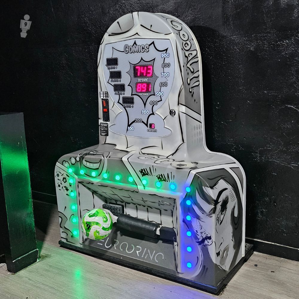 La máquina chutómetro o ** KICKER MULTIPLAYER** destaca por su modo multijugador, permitiendo que hasta cuatro jugadores compitan al mismo tiempo. Cada unidad es una verdadera obra de arte con su carcasa pintada a mano. Su diseño atractivo y versatilidad la hacen perfecta para: