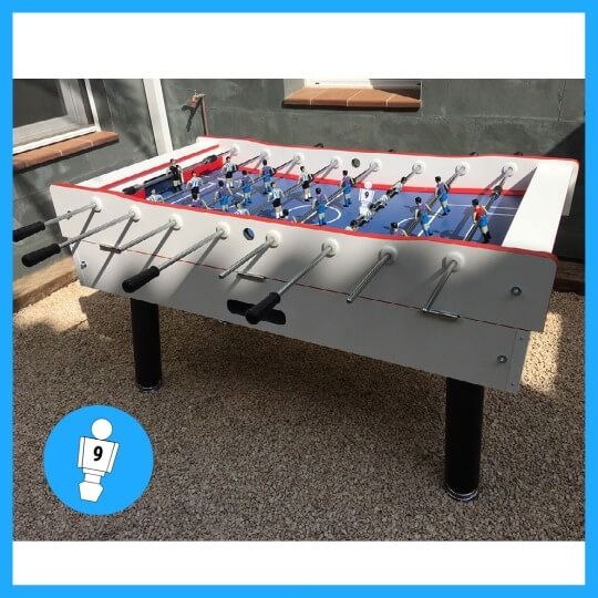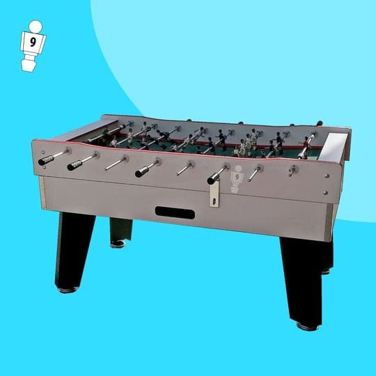 - Materiales Resistentes: Fabricado con tableros de resina fenólica y partículas de alta densidad, este futbolín es ideal para exteriores, ofreciendo resistencia a la humedad, lluvia y sol.